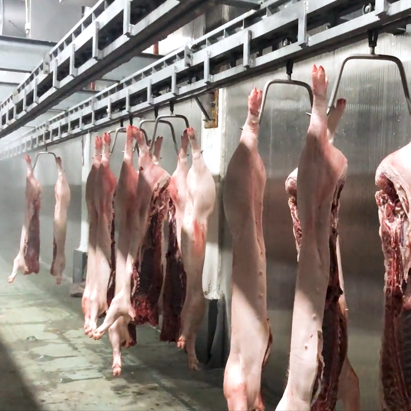 suspension structure, transport 200 carcasses per hour, through quick chill tunnel in 90 mins